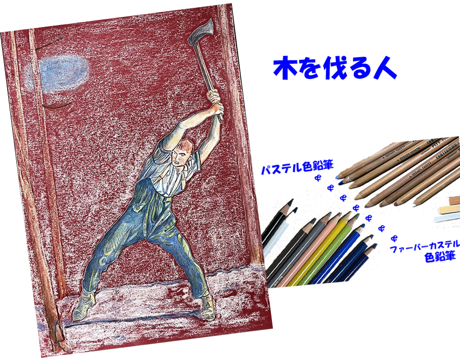 ↓![]() 使った色鉛筆は 水色、茶色、濃い紫色、肌色、橙色、黄色 |